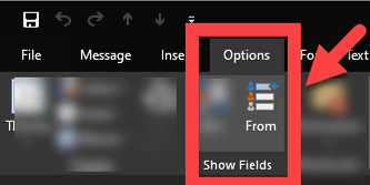 In Outlook, open a new email and select Options tab > Show Fields > From to