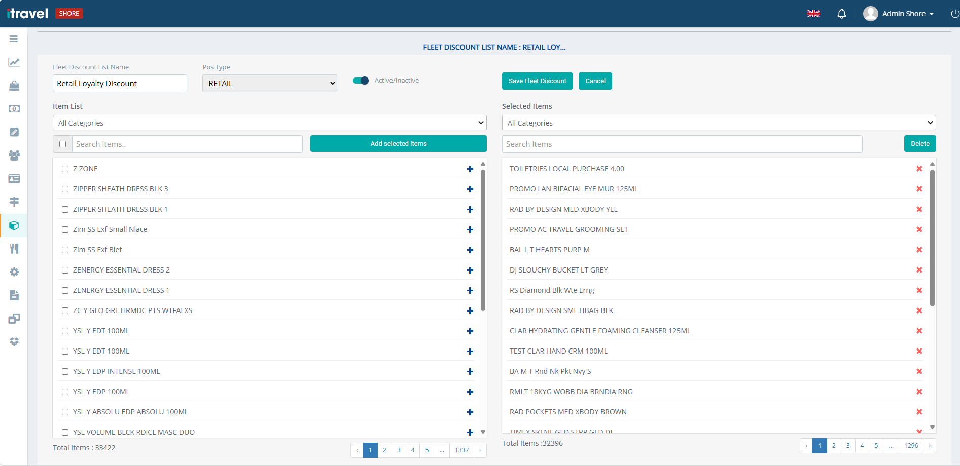 - Once the selected items have been added, the process can be completed by clicking the ‘Save Fleet Discount’ button.