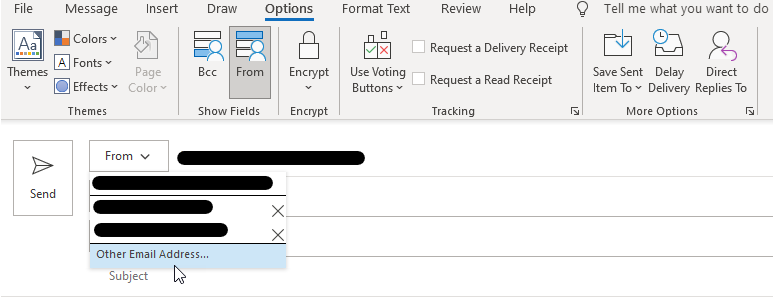 If you have permission to send on behalf of another user, select 'Other Email Address'.